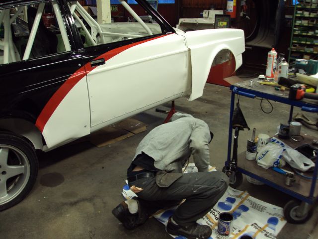 Daniel inspekterar lackjobbet på länkarmarna