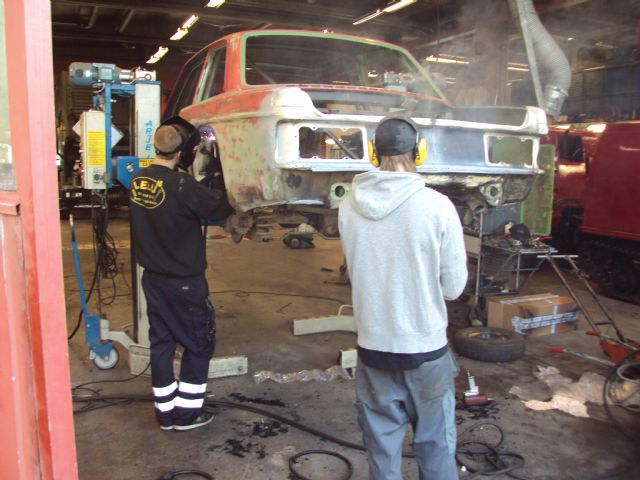 Stefan svetsar ihop dom stora hjulhusen med innerskärmarna å facelift ( asslift ) bakdelen har kommit på plats